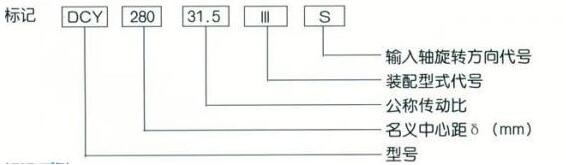 名義中心距為280mm,公稱傳動比為31.5,裝配型式第Ⅲ種,輸入軸順時針方向旋轉(zhuǎn)的三種傳動減速器標記為DCY280-31.5-ⅢS。